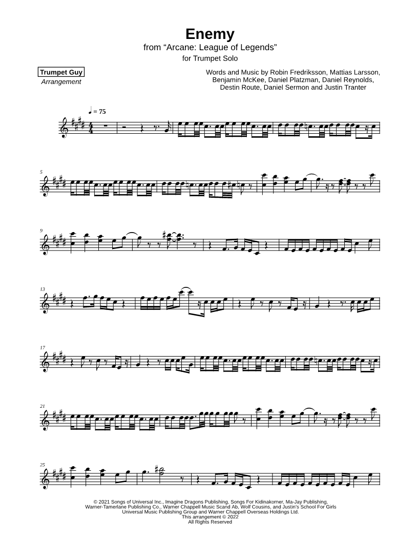 Trumpet, range: C#4-C#6 | |