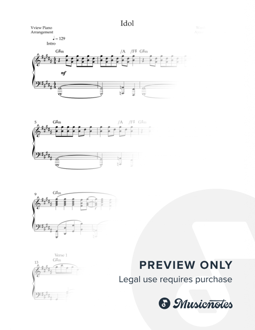 Musicnotes sells a wide variety of digital sheet music products including Singer Pros, Beginner Notes, Choral music, Piano Solos, Lead Sheets, Piano/Vocal/Guitar, Solo and Accompaniment, and fretted instrument tablature.