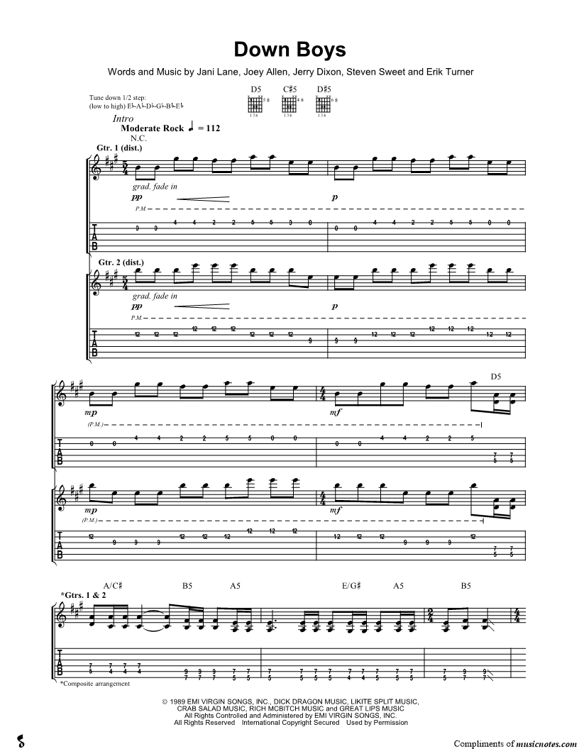 Guitar Tab Guitar/Vocal |