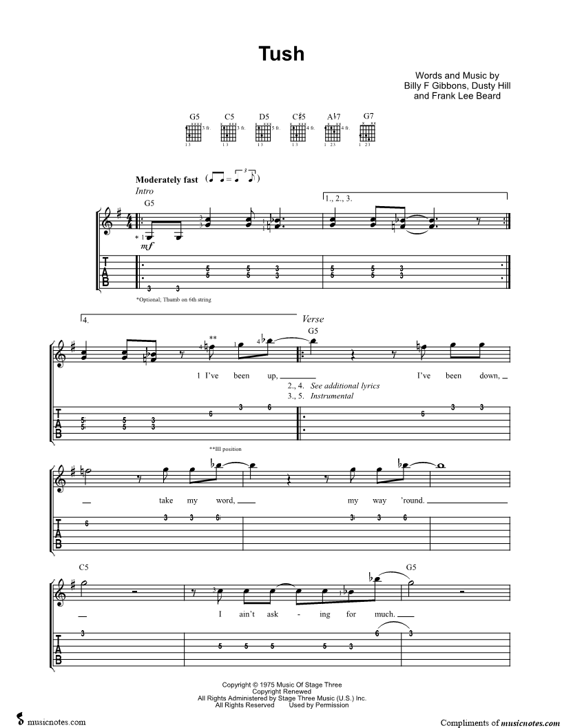 Guitar Tab Guitar/Vocal |